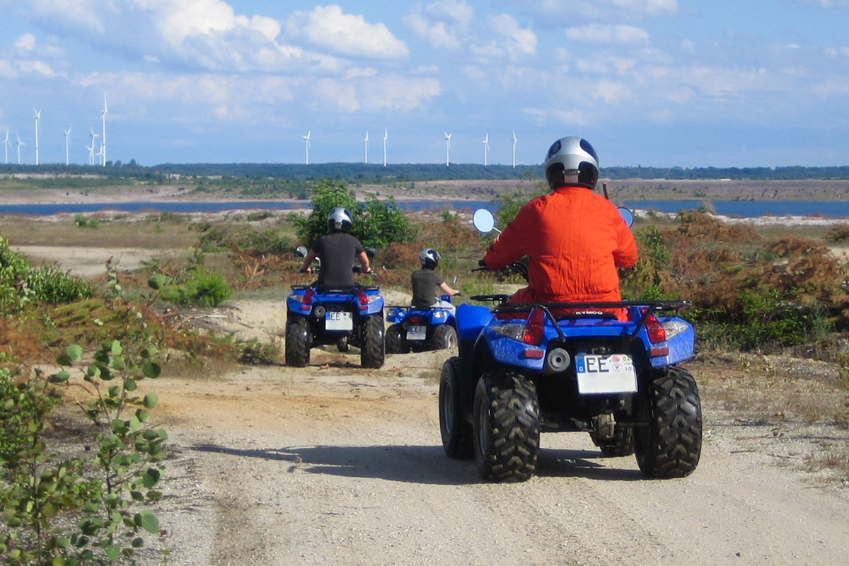 Die Lichterfelder Runde ist eine geführte Quad-Tour mit einer Fahrdauer von 2 Stunden. Die Tour ist gut geeignet für Einsteiger. 80% der Strecke sind abseits befestigter Wege zu fahren. Der Rest der Strecke besteht aus Feldwegen und einigen Asphaltpassagen. Sie fahren, angeführt von unserem Tourguide, vom Sportplatz Sallgast in Richtung Theresienhütte. Durch Lichterfeld geht es dann, vorbei am Besucherbergwerk F60, zum Bergheider See und zurück nach Sallgast. Auf Wunsch legen wir eine Foto oder Getränkepause ein.