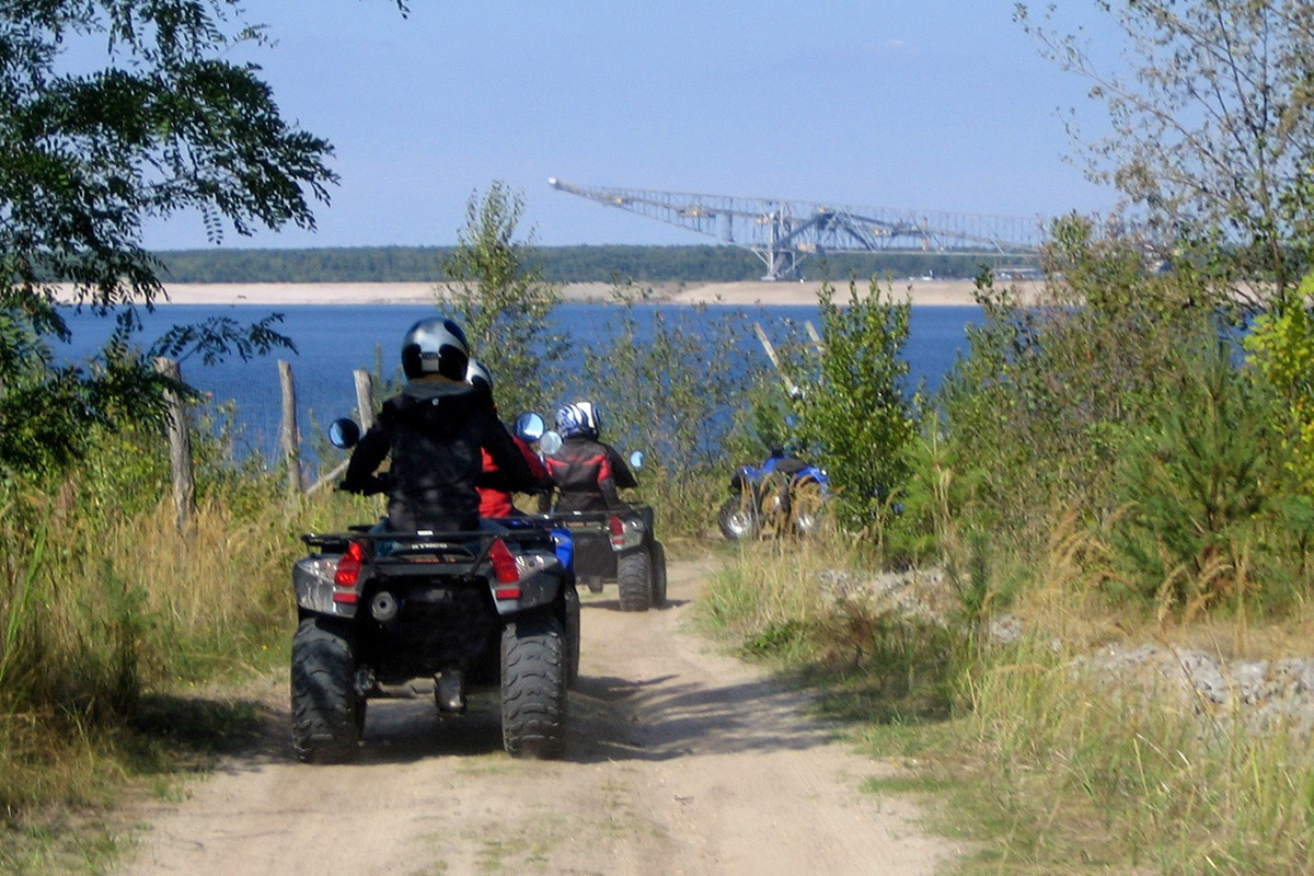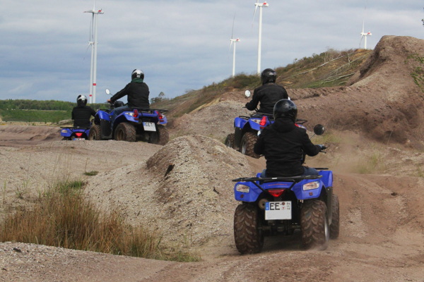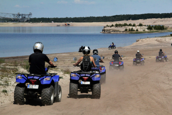 Die See-Tour ist eine geführte Quad Tour mit einer Fahrdauer von 1 Stunde. Die Tour ist auch geeignet für Einsteiger. 100% der Strecke sind abseits befestigter Wege zu fahren. Sie fahren, angeführt von unserem Tourguide, direkt vom Gelände des Besucherbergwerks F60 am Bergheider See entlang. Vor Fahrtantritt erhalten Sie Ihren Leihhelm und eine Sturmhaube sowie eine genaue Einweisung in die Bedienung des Fahrzeuges.